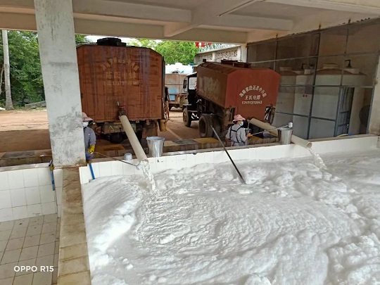 疫情期間膠水運輸極為不暢,很多基地分公司膠水擱置多天。對于這些膠水,金橡公司積極對接基地分公司和民營膠客戶,指導(dǎo)原料保鮮工作,提供保鮮劑,區(qū)域外的通過電話、微信方式指導(dǎo)原料保鮮工作。膠水原料拉到加工分公司后再進一步做特殊工藝保鮮及加工生產(chǎn),保質(zhì)保量完成因疫情影響不能及時運輸?shù)脑霞庸すぷ鳌?/span>
