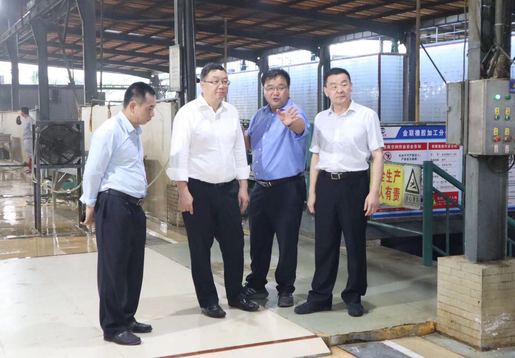 “目前收膠價格是多少,每天能收多少膠?”“污水廢氣采取什么處理方法?”在金聯(lián)橡膠加工分公司生產現(xiàn)場,馬詠華先后來到缷膠臺、澄清池、離心車間、污水處理監(jiān)控室,聽取相關負責人關于橡膠加工年產量、原料收購、生產流程、環(huán)保工藝等方面情況匯報。
